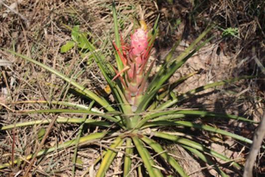 NOMENCLATURA E SIGNIFICADO: Caraguata-í vem do tupi-guarani e significa “erva da folha fibrosa e a sequência de vários A indica que os frutos são comestíveis; o Í é diminutivo e quer dizer pequeno. Também chamada de Gravataí do campo ou Caraguatá-mirim.