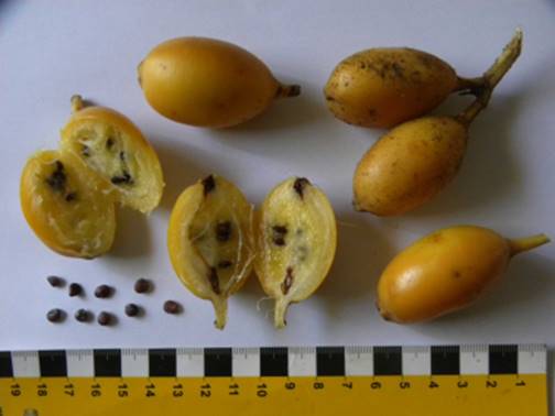 Usos: Frutifica em Fevereiro a Abril. Os frutos são grandes com polpa brancacenta acidulada e de bom paladar. A Polpa produz suco refrescante e de bom sabor.