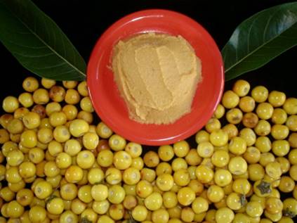 natura, embora sejam acidulados. A polpa é macia e fácil de tirar do caroço e