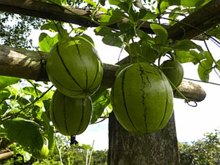 a planta com Maracujá e por isso a espécie pode ser chamada de Maracujarana ou Maracujá-melancia. LAMENTAVELMENTE PERDI A