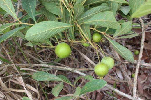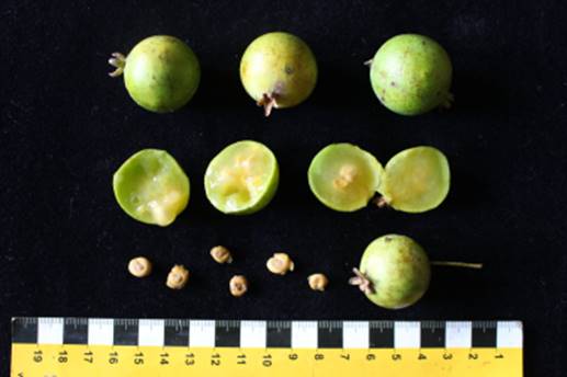 diâmetro e com polpa muito saborosa de cor esverdeada abrigando de 1 a 4