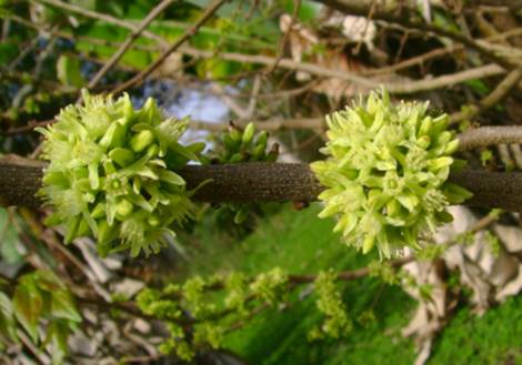 Características: Arvoreta de 2 a 4 ou até 15 metros de altura quando na mata. O tronco é curto, podendo ser único ou bifurcado atingindo de 10 a 36 cm de diâmetro, com casca de cor pardo amarelada e copa larga e quando cultivada a copa forma-se desde o solo. Os ramos são glabros (sem pelos) e áspero devido à lenticelas (uma saliência de células que efetuam trocas gasosas). As folhas são simples, decíduas (que caem no inverno), membranácea (de textura delicada), com base arredondada e ápice longo acuminado (com ponta longa) e nervuras amareladas, sob pecíolos de 4 a 11 milímetros. A lamina foliar mede 7 a 15 cm de comprimento por 4 a 6,5 cm de largura e tem bordas levemente serradas. Essa espécie pode ser facilmente identificada por causa das folhas grandes glabras (sem pelos) e com toda a margem serreada e por notar as estipulas (lamina foliar) de 3 a 5 mm de comprimento, lineares (forma de linha) na base do pecíolo. As flores surgem em fascículos (feixes) com 3 a 25 flores grandes com 1,1 cm de diâmetro quando abertas que surgem nos ramos maduros e desfolhados; têm coloração esverdeada e são muito perfumadas. Os frutos são cápsulas globosas de 9 mm a 2,5 cm de diâmetro.