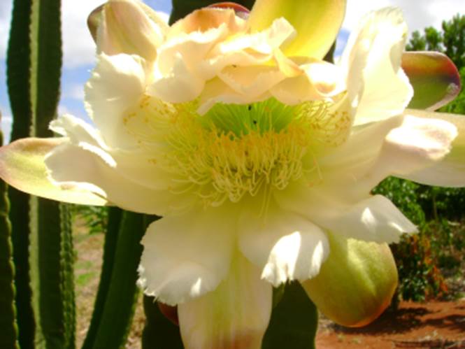 NOMENCLATURA e significado: Mandacarú do tupi “Arvore ou fruta de espinheiro que se come”. Também chamado de Tuna, Cacto candelabro, Jamacaru e Pytaia arbórea.