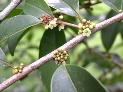 Características: Arvore que exsuda látex quando ferida, de 3 a 4 m quando cultivada, podendo atingir 6 a 12 metros de altura na floresta, com copa globosa muito ramificada no interior, com 3 a 6 m de diâmetro. O tronco tem casca castanho acinzentado escura ou cinzenta, com fissuras longitudinais profundas em arvores velhas. As folhas são simples, sob pecíolo (haste ou suporte) curto, de 3 a 5 mm de comprimento. A lamina foliar é glabra (sem pelos), cartácea (textura de cartolina), com base cuneada (em forma de cunha) e ápice arredondado ou apiculado (com ponta curta), medindo 2 a 6 cm de comprimento por 06 a 1,8 cm de largura. Essa espécie pode ser facilmente identificada por se observar as folhas alternadas aos pares e de disposição dística (em espiral) no ramo; e uma nervura beirando a margem (na face dorsal) proeminente. As flores nascem em fascículos (pequenos feixes) axilares (no encontro da junção da folha com o ramo) com 3 a 8 botões recobertos com bráctea (tipo de folha de proteção) pilosa. Os frutos são drupas subglobosas com casca fina e preta quando madura, com polpa esverdeada, envolvendo 1 semente de 3 a 4 mm de comprimento; o fruto mede 8 a 12 mm de comprimento.