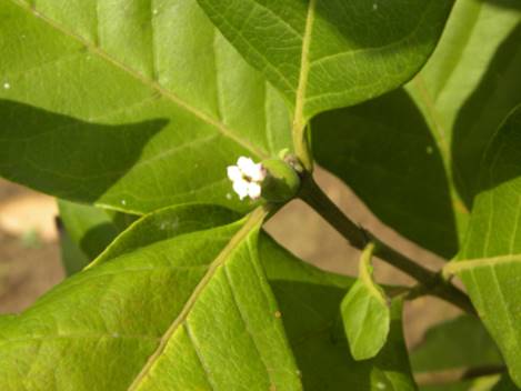 Características: Arbusto de 60 cm a 1,60 metros de altura, que forma pequenas touceiras, com tronco ou caule fino e curto de coloração enegrecida com casca descamando em tiras estreitas. É planta dioica, ou seja, existem plantas com flores masculinas e plantas com flores femininas (indivíduos separados). As folhas são opostas, simples e cartáceas (como cartolina) e facilmente identificada por ter entre os pecíolos (haste ou suporte canaliculado de 6 a 10 mm de comprimento) uma estipula (tipo de folha modificada) e pontiaguda. A lamina foliar mede 5 a 10 cm de comprimento por 2,5 a 3,5 cm de largura e são esverdeadas na face superior e opacas na face inferior. As flores são terminais (surge na ponta dos ramos); as masculinas são agrupadas em 3 a 6 flores sésseis (sem pedicelo ou suporte) e as femininas são solitárias e brancas. Os frutos são bagas de coloração azulada escura ou totalmente preta com 1,5 a 3 cm de diâmetro contendo de 10 a 30 sementes achatadas.