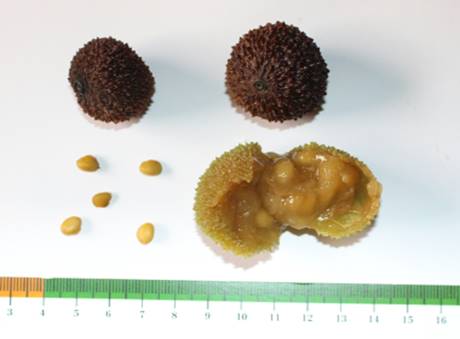 NOME INDIGENA: Puruna-muricada ou Puru-tuim vem do Tupi-guarani e quer dizer “Fruta acre e doce” (Tuim –com pequenas pontas) isso porque lembra o sabor forte do doce de marmelo, com um doce muito agradável. Também é chamado de Marmelada amarela, Marmelada do mato.