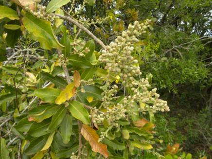 Características: planta arbustiva em terrenos fracos ou arbórea em terrenos fortes, atingindo a