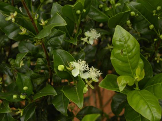 Características: Arbusto ou arvoreta de 2 a 4 m de altura, com copa globosa de 1 a 2 m de diâmetro, ramos tetrágonos (com 4 cantos) levemente puberulos (coberto de pelos pouco densos), sendo a espécie facilmente identificada por essa característica. O trono é tortuoso e fino, com casca rugosa e de coloração castanho escuro. As folhas são opostas, alternas, papiráceas (textura de papel), verde brilhante na superfície superior e opacas no dorso, sob pecíolo (haste ou suporte) de 3 a 4 mm de comprimento. A lamina foliar é papirácea (textura de papel), oblonga (mais longa que larga), ovada (forma de ovo), medindo 2 a 4 cm de comprimento por 1 a 2 cm de largura, com base arredondada e ápice agudo ou apiculado (com ponta curta). As flores nascem nas axilas dos brotos e são caracterizadas por 2 brácteas (tipo de folha modificada) na base do pedúnculo (haste ou suporte da flor). O cálice (invólucro esterno da flor) é formado por 4 sépalas desiguais e cilioladas (como cílios) e permanentes e corola (invólucro interno) com 4 pétalas brancas côncavas (como barco) e caducas (que caem). As flores medem de 1 a 1,3 cm quando abertas e os frutos são bagas tetrágonas (com 4 angulos) e oblongas (mais longa que larga) medindo 0,8 a 1,6 cm de comprimento.