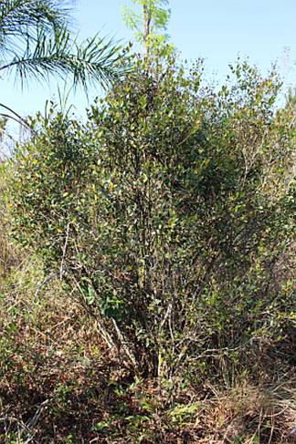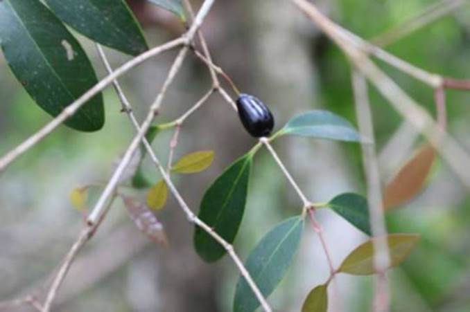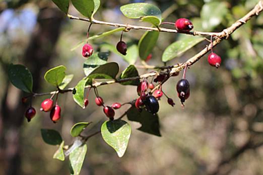 Características: arbusto com a parte aérea ramificada desde a base, formando às vezes touceiras. A planta cresce de 1 a 3 m de altura, tem tronco com casca marrom escura com superfície fissurada e com descamação em placas estreitas. As folhas são simples, opostas, lanceoladas (forma de lança), cartáceas (como cartolina) e de coloração acobreada quando na brotação. A lâmina mede 2 a 3,5 cm de comprimento por 0,8 a 1,7 cm de largura. A espécie pode ser facilmente identificada por se observar o ápice da folha que é alongado e estreito. As flores surgem de gemas no ápice dos ramos, isoladas ou aos pares sobre pedúnculos (cabinhos) verde, com 1 a 2,4 cm de comprimento com uma flor com sépalas minúsculas persistentes no fruto e pétalas brancas estreitas. O fruto é baga que mede 0,5 a 1,2 cm de diâmetro, cilíndricas ou ovais e quando bem maduras ficam com cor negra, com carne ou polpa delicada e doce envolvendo de 1 semente pequena, cilíndrica de 5 a 7 mm de comprimento.