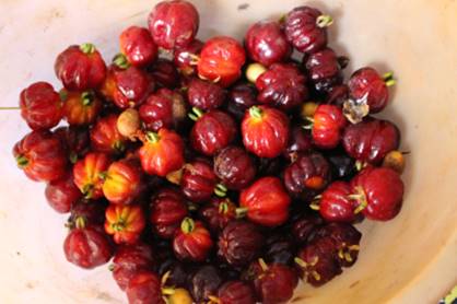 Usos: Frutifica nos meses de setembro a novembro. Os frutos são mais saborosos e suculentos do que a Pitanga arbórea (Eugenia uniflora) e podem consumidos in natura na forma de sucos, geleias e sorvetes.