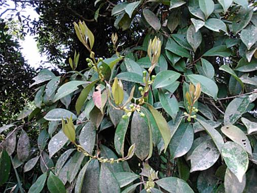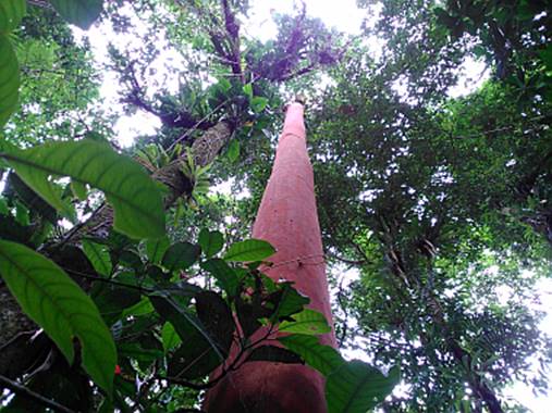 NOMENCLATURA: SAPIRANGA FRIZADA (Significado de Plicato) vem do tupí e significa “Pele em sangramento” por causa da cor da casca e pela seiva que oxida e fica vermelha quando se faz um corte no tronco. Também recebe o nome de Pitanga verde ou Cambucá de fruto rugoso.