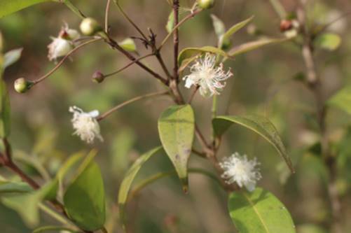 Características: Arvoreta de 2 a 5 metros, com copa ramificada, densa e arredondada, com ramos grablescentes, o troco é tortuoso, com casca acinzentada e esbranquiçada. As folhas são simples, opostas e glabras (sem pelos). Tem textura cartácea (como cartolina), é ovada (com forma de ovo), medindo 2,5 a 3,5 cm de comprimento por 1,5 a 2 cm de largura; com base cuneada (com forma de cunha) e ápice é agudo com ponta longa. As flores nascem em fascículos (tipo de cacho formando feixe) com 2 a 4 flores de 8 mm de diâmetro. Estas tem cálice (invólucro externo da flor) cupulado (com forma de cúpula) com 4 sépalas livres e corola (invólucro esterno) com 4 pétalas brancas e muitos estames com anteras (órgãos masculinos) brancos capitados (com forma de cabeça). O fruto tem forma Piriforme e mede de 1,5 a 2,2 cm de comprimento.