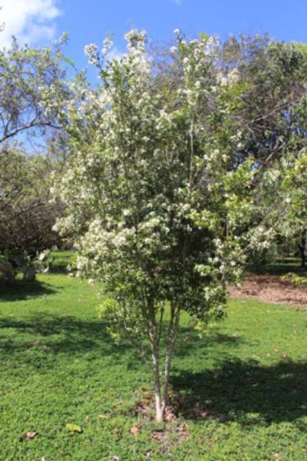Características: Arbusto ramificado desde a base que cresce de 2 a 4 metros de altura, formando copa com forma de guarda-chuva. O trono é cilíndrico, medindo de 4 a 25 cm de diâmetro, com coloração creme acinzentada e casca desprende-se em placas papiráceas (como papel). As folhas são simples, opostas, cartáceas (textura de cartolina) e semi-perenes (perdendo 50% das folhas no fim do inverno). A lamina foliar é verde brilhante em cima e de cor creme por baixo, medindo de 2,5 a 4,5 cm de comprimento por 1,3 a 2 cm de largura, apresentando forma ovada, com base obtusa (arredondada) ou subcordada (semelhante a coração) e ápice é atenuado (que se estreita gradativamente) ou acuminado (com ponta longa). As flores são brancas, medem 8 mm de diâmetro quando abertas e nascem nas axilas das folhas em pedúnculos (haste de suporte) solitários ou agrupados em numero de 2 a 5; medindo de 2 a 4 cm de comprimento. No ápice está o botão floral protegidos por bractéolas (tipo de folha modificada) de 2 a 4 mm de comprimento. O fruto é uma baga esférica ou ovóide (forma de ovo), lisa, medindo de 1,5 a 2,5 cm de altura por 1,8 a 2 cm de largura.