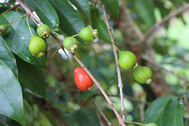 planta tem folhas muito semelhantes ao cambucá e frutos vermelhos que
