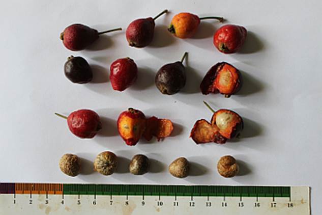 FRUTOS, POLPA E SEMENTES DA VARIEDADE ROXA |