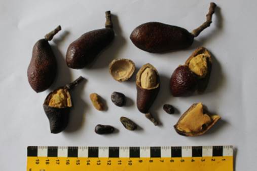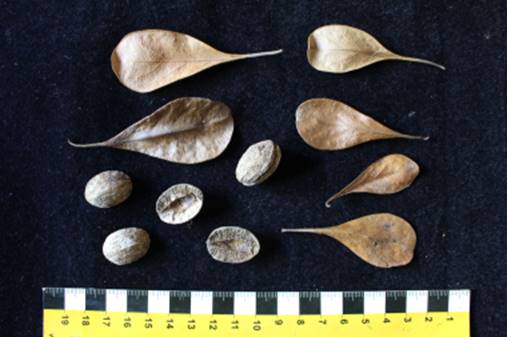 estão fotos das cascas da semente e folhas da Tanimbuca