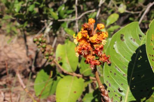E este é um registro exclusivo das flores e frutos maduros dessa espécie que