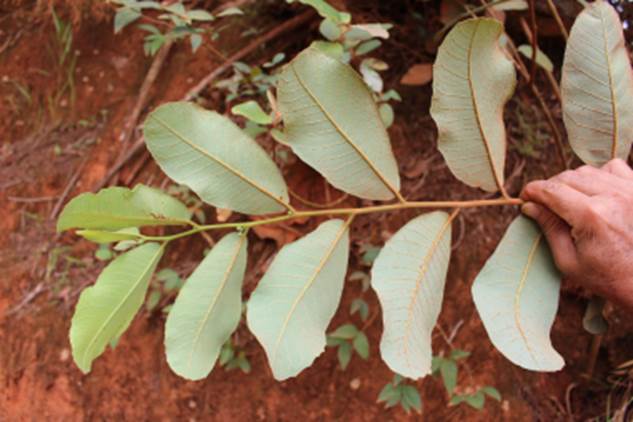 As folhas são bem semelhantes ao Brosimum glaucum, porém essa espécie é originaria da mata de restinga do litoral e não ocorre no interior. Concluímos então que é uma nova espécie. Infelizmente os 2 exemplares que conheço estão no barranco na beira da estrada e sofrem muito com roçadas e queimadas. Acompanho as plantas que conheço a anos e só agora consegui encontrar cerca de 18 frutas cujas sementes geraram algumas lindas mudas que serão plantadas aqui no pomar coleção. Abaixo estão as fotos dos poucos frutos encontrados: