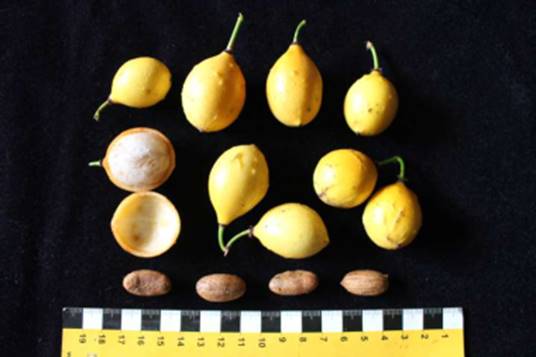 abertas, e sementes de Bacupari verdadeiro (G. gardneriana) |