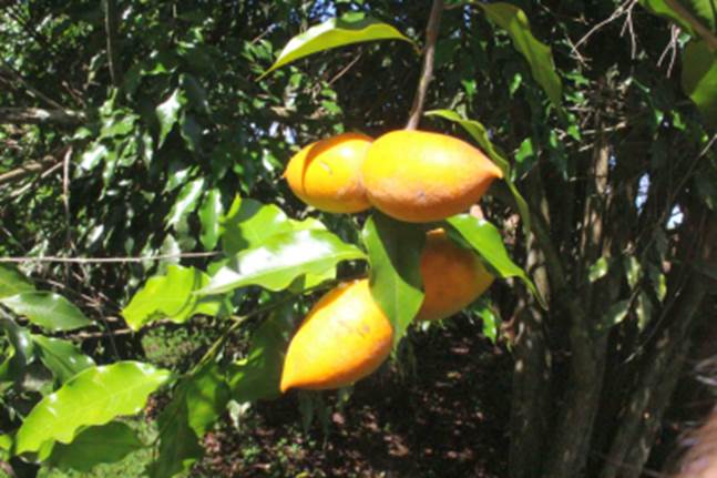 nos meses de novembro a fevereiro. O fruto é muito bonito, mais seu sabor é tão