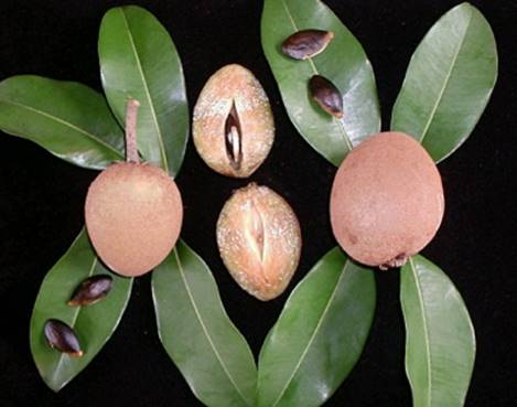 NOMENCLATURA E SIGNIFICADO: Sapoti ou sapota, origem da língua indígena náuatle do Mexico, pronunciado Tzápotl que significa leite ou goma de mascar em vista do latex dessa arvore ser usado para fazer chiclete.