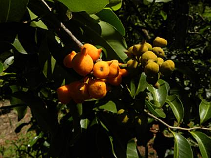 OBSERVAÇÕES: RARA ESPÉCIE TREPADEIRA SUBSCANDENTE, ORIGINARIA DAS FLORESTAS TROPICAIS DE QUEENLAND, NORDESTE DA AUSTRÁLIA. É UMA PLANTA DE FOLHAGEM PERENE, COM BROTAÇÕES EM ZIG-ZAG E FRUTOS (2 cm de diâmetro) COMPOSTOS DE COR ALARANJADA, QUANDO BEM MADUROS E COLOCADOS NA BOCA SE DISOLVEM FACILMENTE DEIXANDO UM AGRADAVEL GOSTO DE TANGERINA E PITANGA. NÃO DEIXE DE PLANTAR ESSA LINDA FRUTIFERA EM SEU POMAR!