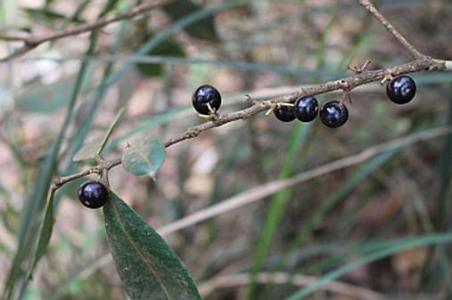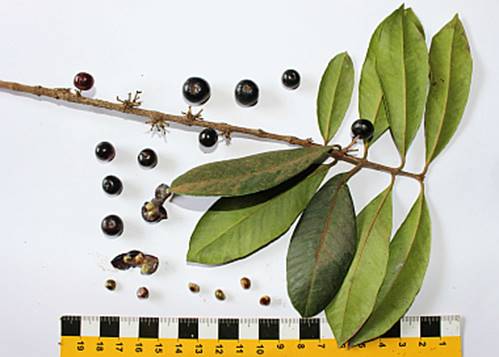 USOS: Frutifica em março a abril. Os frutos são oblongos (mais longo que largo) com até 2 cm de comprimento, tem polpa negra e com sabor que lembra um pouco uma mistura de goiaba por amadurecer com jabuticaba. É frutífera muito atrativa para pássaros.