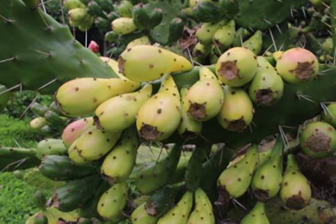 Usos: Frutifica em fevereiro a novembro. Frutos maduros tem cor amarelada e a casca tem pequeninos espinhos nas aréolas, e por isso recomendo colher com luva de couro, colocar numa caixa vasada e com uma vassoura varrer revirando os frutos para sair os espinhos, depois enxaguar em agua corrente para limpeza total. Após este processo p frutos podem ser descascados ou cortados no meio, para consumo in natura, ou em saladas ou ainda, os frutos mais verdes têm diversos usos em pratos salgados. A polpa muito deliciosa e refrescante tendo gosto de gelatina de limão e lembrando um pouco o kiwi. A planta é cultivada como ornamental e como cerca viva, mais tem grande potencial como frutífera comercial pois seus frutos são resistentes, saborosos e muito nutritivos.