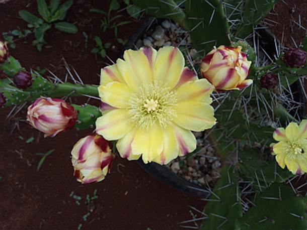 NOMENCLATURA E SIGNIFICADO: URUMBEBA DE FLOR AMARELA COM FAIXA RUBRA vem do tupi guarani e significa “Folha com espinho que dá alimento”. Também recebe o nome de Arumbeba de Montevidensis, Pamatória da Argentina ou Pera-espinhosa-do-Uruguai.