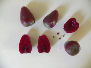 rica com cor vermelho púrpura ou vinho quando totalmente maduro tendo a polpa