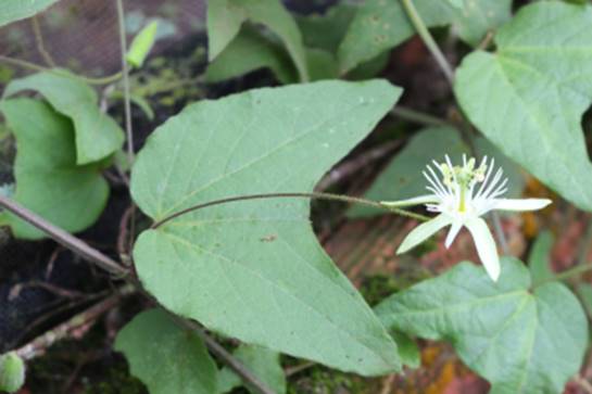 Características: Trepadeira perene, de porte herbáceo, de médio porte, atingindo 3 a 6 m de comprimento. Tem caule estriado, anguloso, glabro ou pubescente e as vezes com coloração vinácea. Estípulas linear-subuladas, levemente falcadas, margem inteira, com 5–7 x 0,3 mm. Pecíolo ou cabinho com 1-3 cm, glabro ou piloso, sem glândulas. Folhas bilobadas ou incipiente trilobadas, cordadas na base, membranáceas; glabras ou levemente pilosas na face adaxial, descoradas e pubescentes na face abaxial, com 1,3-7 cm na nervura mediana, 2,2-10 cm nas nervuras laterais e até 8 cm entre os ápices dos lóbulos. As flores são axilares, solitárias ou aos pares, branco-esverdeadas, ou mais raramente rosadas (como na variedade que tenho) com 2-6 cm de diâmetro. Tubo do cálice cilíndrico. Sépalas ovaladas, pilosas, verde-claras, cartáceas, com 1-3 x 0,2-0,4 cm. Pétalas oblongo-lanceoladas, brancas ou rosadas medindo 0,6-1,5 x 0,2-0,4 cm. Fruto elipsoidal ou fusiforme, hexagonal, marrom-avermelhado quando maduro, com 5-6 x 1,5-2 cm. Sementes estreitamente obovóides, apresentando sulcos transversais, com 3,2 x 2,2 mm; envolvida em arilo espesso e adocicado.