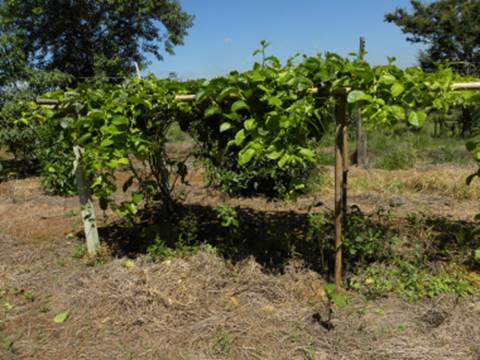 Plantando: Pode ser plantada na sombra ou em bosques com arvores grandes bem espaçadas, ou ainda em pleno sol – neste caso só é necessário irrigar sempre que o solo estiver seco. Plantar em covas feitas com 40 cm de largura, altura e profundidade preparadas com cerca de 40 a 50% de esterco e folhas apodrecidas. Espaçamento entre plantas ou palanques 3 x 3 m. Conduzir a planta até a mesa de arames na ponta do palanque, amarrando-a num tutor, depois é só deixar os ramos crescer e pender por todo o redor. Para uma ótima frutificação é importante fazer a poda do ponteiro de crescimento a altura de 10 cm na época em que os botões estiverem com tamanho médio (com 1 a 2 cm de comprimento). No preparo da cova adicione a terra cerca de 300g de calcário e1 kg de cinzas de madeira, deixando curtir por pelo menos 1 mês antes do plantio. Após plantada. irrigue a cada dez dias nos primeiros 3 meses se faltar chuvas. Mantenha a coroa em volta da planta coberta com capim seco ou qualquer outro material orgânico para conservar a umidade e a temperatura fresca.