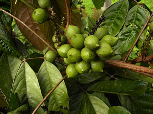 OBSERVAÇÕES: Espécie exótica nativa do Equador e Comombia. A planta tem crescimento lento, é uma liana ou trepadeira com folhas muito decorativas na brotação. Aqui no sitio frutas raras a planta se adaptou bem e se tornou resistente a secas e a geadas, começa a produzir com 4 anos a depender do clima e altitude. Os frutos são do tipo capsula indeiscente (que não se abre) de cor arroxeada e com sementes arredondadas recobertas por arilo branco e saboroso. A planta é utilizada no local de origem como energético. Os nativos raspam a entrecasca e fazem uma bebida energética. Observei que o arilo também tem propriedades energéticas. Temos mudas disponíveis.