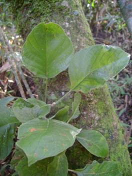 Foto do tronco e folhas do veludo branco (Guettarda viburnioides) |