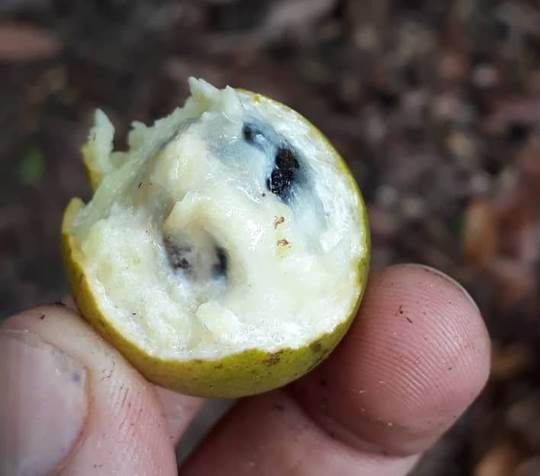 OBSERVAÇÔES: foi introduzida no sitio frutas raras em 2022 por meio de sementes coletadas por um amigo na mata atlântica do Espirito Santo. As fotos são da planta mãe que produz frutas grandes e saborosas. A germinação e desenvolvimento da muda no clima subtropical com frio e geadas no inverno tem sido muito satisfatória.