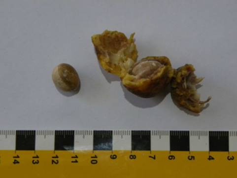 Mudas: As sementes são redondas com casca clara e lisa e com cicatriz, medindo 1 cm de comprimento por 1 cm de largura. São recalcitrantes (perdem o poder germinativo se forem secadas), por isso devem ser plantadas logo que despolpadas, colocando 1 semente por embalagem individual contendo substrato de 40% de terra vermelha, 30% de matéria orgânica e 30% de areia branca. A germinação se inicia com 40 a 60 e tem percentual médio de 90% para sementes frescas. As mudas devem ser formadas em pleno sol e atingem 35 cm com 10 meses de vida.
