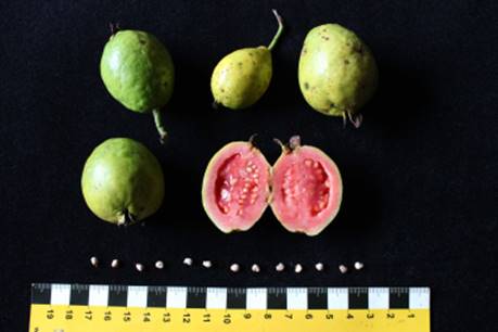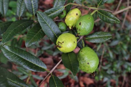 em dezembro a março. Os frutos têm sabor mais suave que a goiaba e não tem