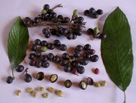 Usos: Frutifica nos meses de novembro a fevereiro. Os frutos são roxos, com casca fina, com polpa liquida esverdeada, lembrando sabor de bala de Tutti-frutti, muito apreciados para o consumo in natura, embora tenha pouca polpa. As sementes também são comestíveis. As flores produzem bastante néctar para as abelhas silvestres. Recomendo o plantio, pois o Saraguají atrai grande numero e varias espécies de passarinhos.
