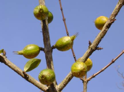 esbranquiçada. Os frutos são oblongos (mais longa que larga) de casca glabra