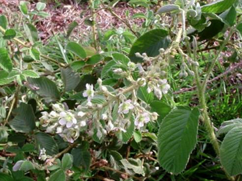 Características: É um arbusto perene, trepador e muito ramificado formando touceiras com ramos de 2 a 4 m de comprimento, piloso (coberto de pelos longos) e com espinhos recurvados próximos aos entrenós. A ramagem apical (da ponta) tem forma quadrangular e é estriada. As folhas são compostas trifoliadas (com 3 folíolos) e raramente penta-foliada (com 5 folíolos) sob pecíolo (haste que prende a folha ao caule) de 5 a 9 cm de comprimento e 2 estípulas (formação laminar na base) de 0,8 a 1,2 cm de comprimento. Estas medem 6 a 10 cm de comprimento por 4 a 7 cm de largura preso ao pecíolo principal por peciólulo (haste secundaria que suporta o folíolo) de 0,5 a 2 cm de comprimento. A base é cordada (semelhante ao coração), o ápice acuminado (termina com ponta aguda e comprida), a margem é serrilhada e a coloração da face superior é dum verde opaco e a face inferior é prateada. As flores nascem em panículas (tipo de cacho composto) terminais de 15 a 30 cm de comprimento, contendo de 30 a 90 flores pequenas de 1,2 cm de diâmetro quando aberta; e formada por cálice (invólucro externo) com 5 e raramente 6 sépalas tomentosas (coberta de lanugem) medindo cerca de 3 mm de comprimento com ápice ou ponta aguda. A corola (invólucro interno) tem 5 pétalas róseas medindo 4 a 5 mm de comprimento. O fruto é baga globosa ou apocárpica (tecidos agregados ou unidos ao redor dum receptáculo comestível) de 0,8 a 1,2 cm de diâmetro e pesando de 0,5 a 0,8 gramas.