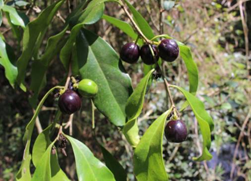 Características: Árvore de 5 a 15 m de altura, quando cultivada não passa de 6 metros. Quando adulta tem tronco com cilíndrico e acanelado (com reentrâncias) e casca escamosa de cor pardo-clara. Os ramos jovens são cilíndricos e finamente estriados. As folhas são simples, alternadas e espiraladas; sob pecíolo de 07 a 1-3 cm de comprimento. A lâmina é cartáceas (como cartolina), ovado-oblongas ou elíptica com 4-12 cm comprimento por 1,8 a 3 cm de largura, tendo como principal característica 2 ondulações na margem do meio da folha para o ápice e 4 ou 5 pares de nervuras laterais com padrão desuniforme. A inflorescência nascem em racemos axilares solitários ou geminados de 1 a 1,8 cm com 2 a 3 flores sesseis (sem cabinho) de cor esverdeadas claras medindo 4 a 6 mm de altura. O fruto é uma drupa arredondada com 1,5 a 2 centímetros com casca fina de cor purpura e polpa suculenta roxa envolvendo 1 semente ovoide marrom clara de 1,2 cm de altura por 0,8 cm de largura.