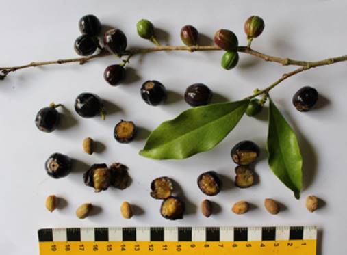 Usos: Frutifica nos meses de agosto a setembro. Os frutos podem ser consumidos in natura mas tem sabor que lembra um xarope para gripe com sabor tutti-frutti. Sua cor arroxeada indica que a fruta é rica em polifenóis e antioxidantes, podendo ser descoberta muitas substancias se for estudada. O fruto pode ser despolpado e a polpa utilizada para fazer sorvetes, sucos, doces, recheios de bolo ou bolachas etc... A árvore não deve faltar no pomar de um colecionador de frutas e em projetos de reflorestamentos, pois seus frutos alimentam diversas espécies de animais e pássaros.