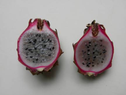 FRUTO CORTADO MOSTRANDO POLPOA E SEMENTES