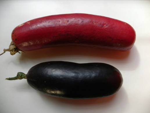Fruto maduro de Cruá vermelho (Sicana odorífera) Fruto maduro de Cruá roxo (Sicana atropurpurea) |