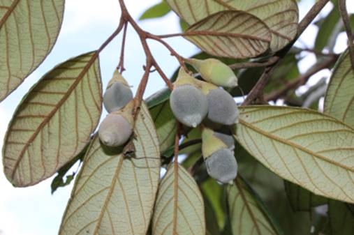 NOMENCLATURA E SIGNIFICADO: JAGUATINGA AÇÚ vem do tupi e significa “Arvore da folha pintada de branco” e o adjetivo Açu quer dizer grande por causa dos frutos grandes. Também recebe o nome de Fruta de roxinol, Benjoeiro, Estoraque do mato, Folha de incenso e Arvore dourada