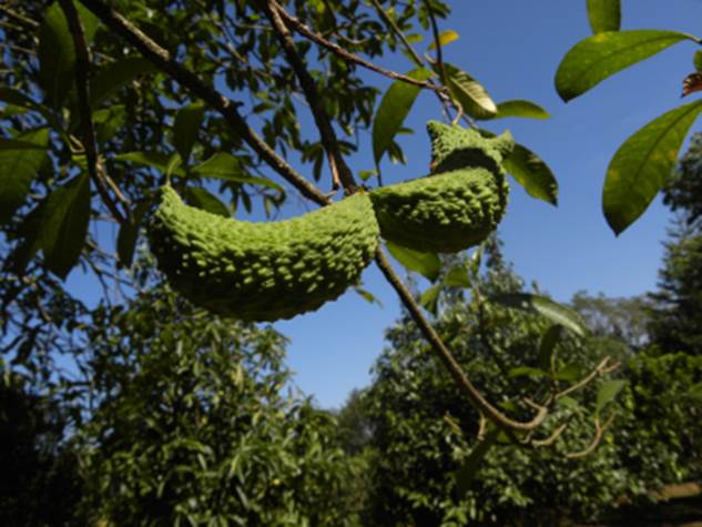 CULTIVANDO: Fazer apenas podas de formação, e eliminar os galhos que nascerem na base do tronco ou que estiverem mal formados ou nascerem para dentro da copa, permitindo a penetração do sol. Adubar com composto orgânico, 4 a 5 pás de composto feito de galhos e folhas trituradas + 50 gramas de farinha de osso + 50 gramas de torta de mamona, dobrando essa quantia a cada ano até o 3ª ano. Distribuir os nutrientes superficialmente, em círculos distanciados à 50 cm do tronco. Sempre manter capim seco ou qualquer tipo de cobertura morta a fim de manter umidade na superfície. A planta é muito resistente a pragas e doenças.