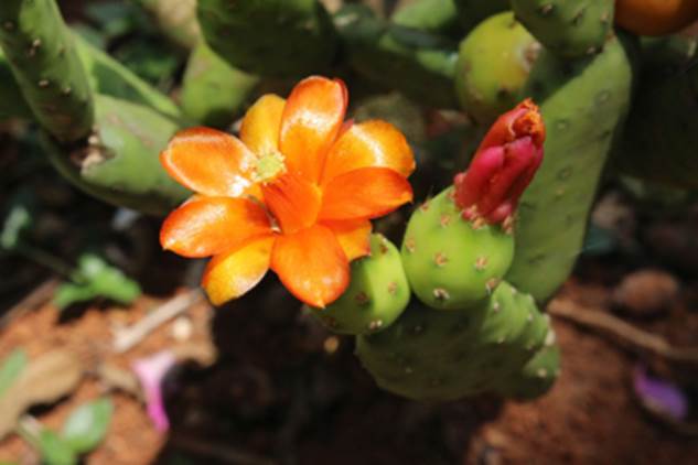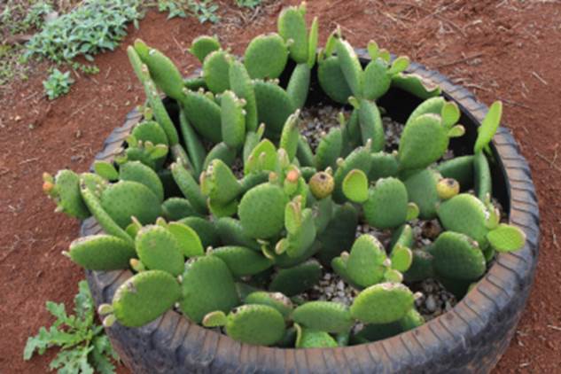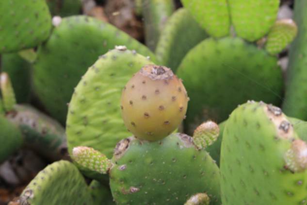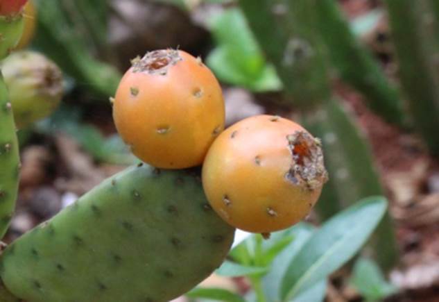 Usos: Frutifica em outubro a abril. Os frutos bem maduros tem casca lisa e com minúsculos espinhos chamados de gloquúdeos. Esses espinhos são facilmente retirados lavando os frutos sobre uma peneira com a ajuda de uma escova. Para comer é bom cortar o fruto no meio e retirar a polpa com uma colher. A polpa muito deliciosa, rica em antioxidantes e tem gosto que lembra gelatina de abacaxi ou de limão a depender da espécie. A planta é cultivada como ornamental, e é chamada de suculenta e também tem grande potencial como frutífera de larga aceitação no mercado. Mais informações sobre as propriedades nutricionais dos frutos podem ser vistas na pesquisa disponível em: