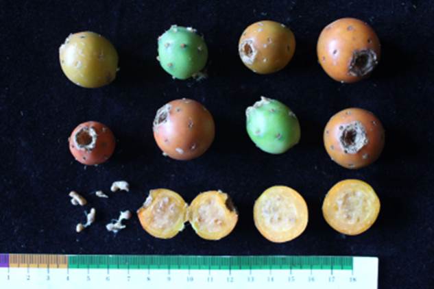 Tacinga subcylindrica - frutos, polpa e sementes |