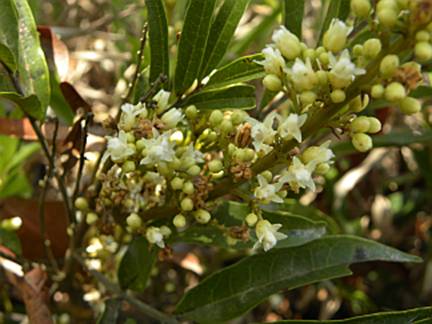 largura de coloração branco amareladas. O fruto é uma drupa apiculada quando