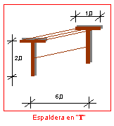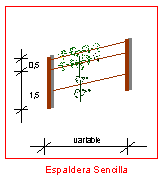 ![]() | Consiste en construir una espaldera vertical formada de postes distanciados a 2 m y una altura